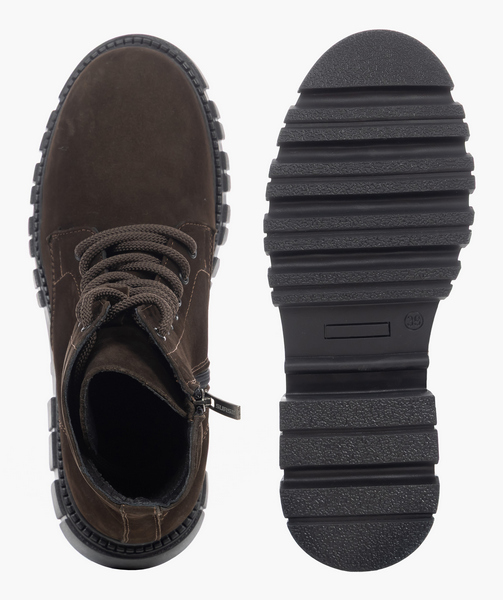 Сдержанный, но дерзкий вид ботинок сделает ваш образ собранным и смелым. Конструкция верха выполнена из тактильно приятного нубука, отлично защищает от холода и ветра. Внутренняя подкладка из байки сохраняет тепло и при этом пропускает воздух, позволяя коже дышать. Вкладная ортопедическая стелька мягко поддерживает своды и снимает нагрузку на суставы во время ходьбы. Фронтальная часть оснащена шнуровкой и молнией сбоку для ускорения надевания обуви. Формоустойчивый задник фиксирует задний отдел стопы и останавливает заваливание. Тракторная высокая подошва отлично защит от холода и придаст каждому шагу энергии и устойчивости. Наденьте их — и вы готовы преодолеть любые преграды.