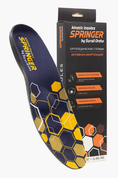 SPRINGER - ортопедические  стельки с динамическим каркасом серии KINETIC для амортизации переднего и заднего отдела стопы при интенсивных нагрузках.